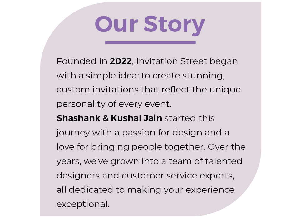 At Invitation Street , we combine creativity and innovation to create unique designs for every occSION. Our extensive customization options ensure each invitation reflects your style and the individuality of your event.